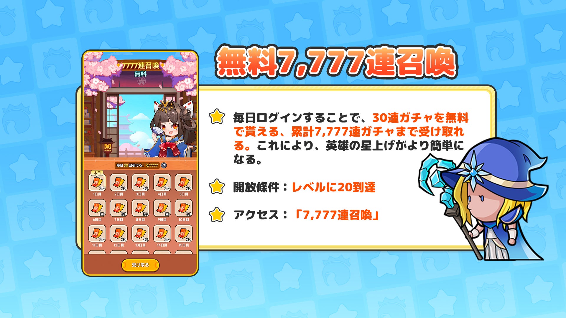 · ログインだけで7777連ガチャ無料&日本限定SSRヒーロー「アマテラス」をプレゼント
